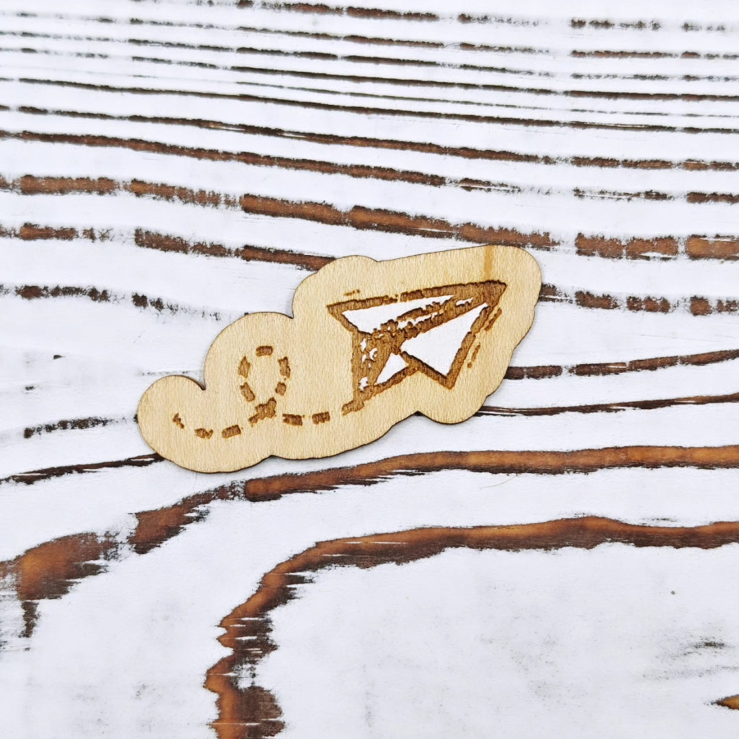 Este sticker de madera combina la sencillez con el deseo de volar lejos. Con un diseño grabado de un avión de papel en pleno vuelo, es perfecto para espíritus libres, amantes de los viajes o soñadores empedernidos. Cada pieza es cortada y grabada con láser sobre madera y su forma única lo hace destacar en cualquier superficie.