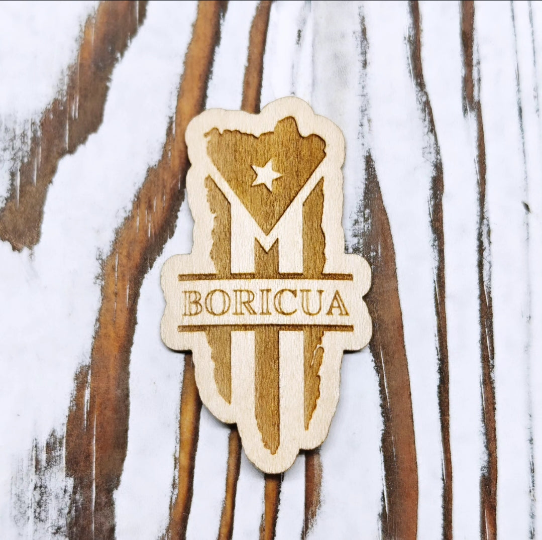 Este sticker en madera combina dos símbolos de orgullo boricua: el contorno de Puerto Rico y la bandera con la palabra "Boricua" al centro. Un diseño simple pero poderoso, perfecto para quienes llevan su cultura con orgullo donde quiera que vayan.