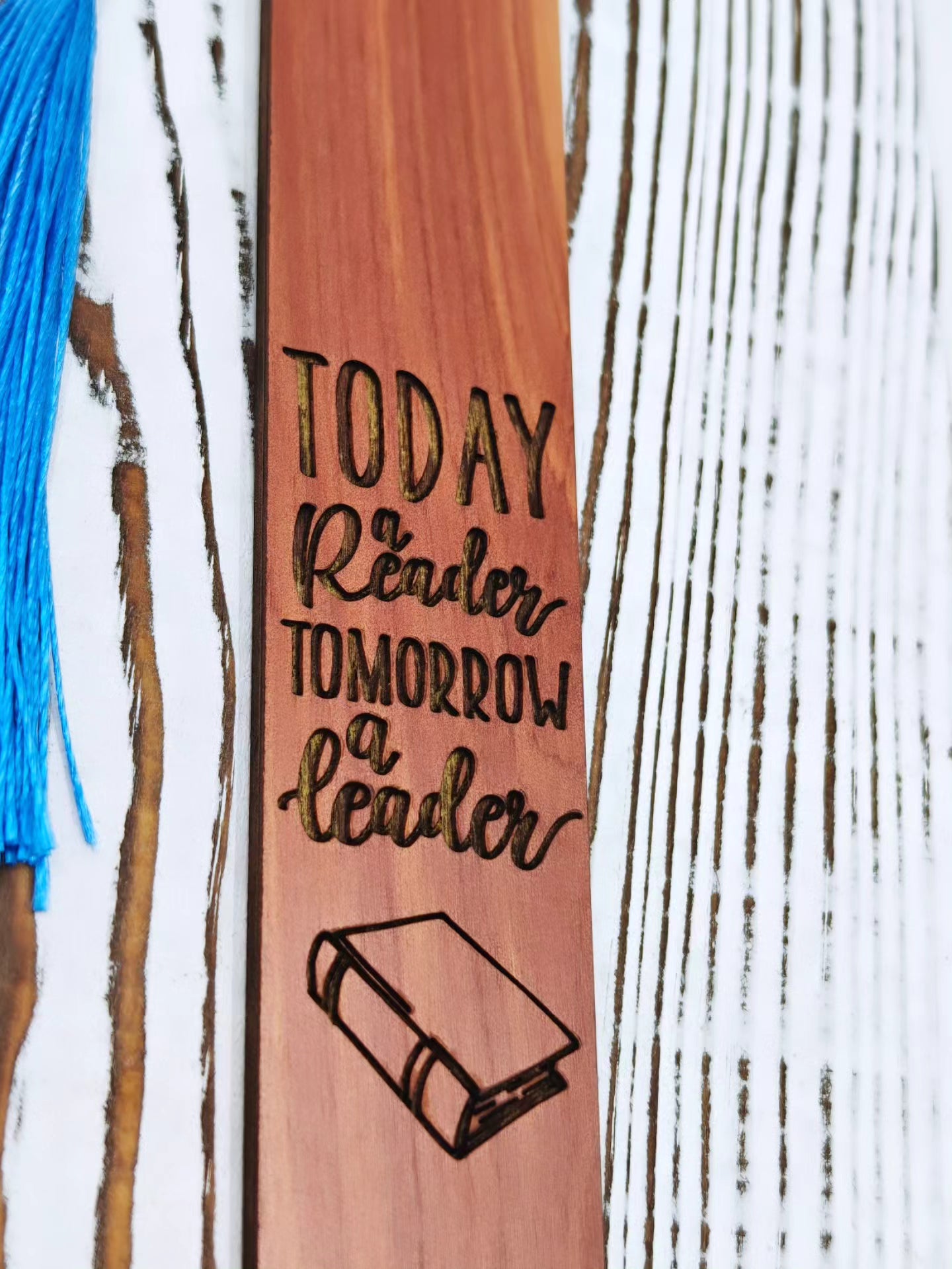 Estos bookmarks están hechos en madera de cedro aromático, grabados con frases inspiradoras que celebran el amor por la lectura. El diseño de cada pieza es único, pues el grano natural del cedro varía en tono y textura, haciendo que ningún marcador sea igual a otro.