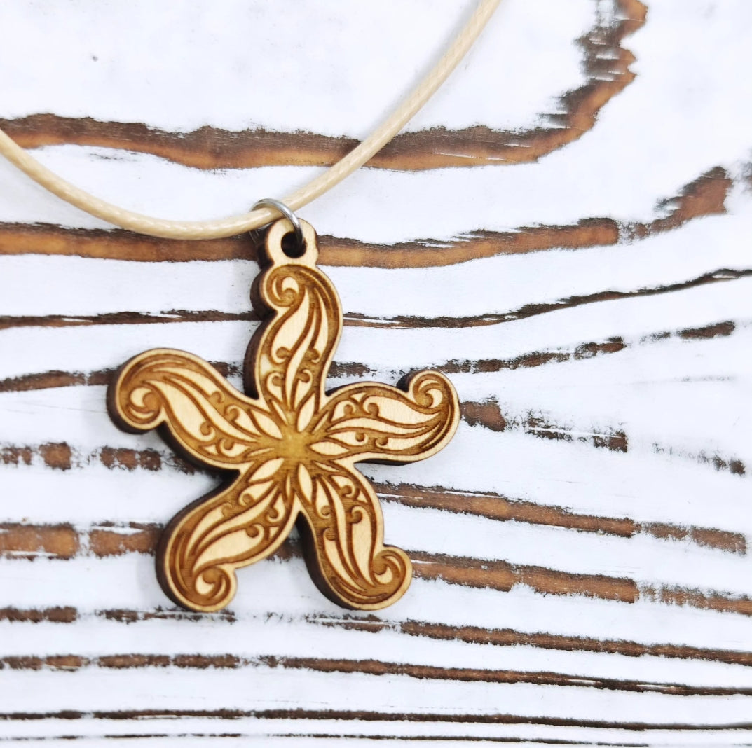 Este collar de estrella de mar captura la esencia de la playa en un diseño elegante y artesanal. Tallado en madera con delicados grabados que imitan los movimientos del mar, es una pieza ligera, natural y perfecta para quienes aman el océano.