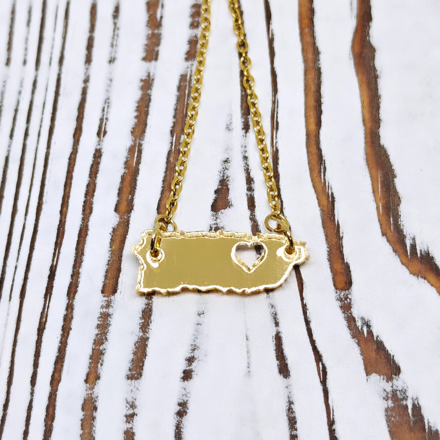 Luce tu orgullo boricua con este collar único ✨. La cadena está hecha de acero inoxidable, resistente y duradera, ideal para uso diario sin perder su brillo. El charm es la isla de Puerto Rico con un corazón, elaborado en acrílico de espejo, lo que le da un acabado elegante y moderno que refleja la luz con cada movimiento.
