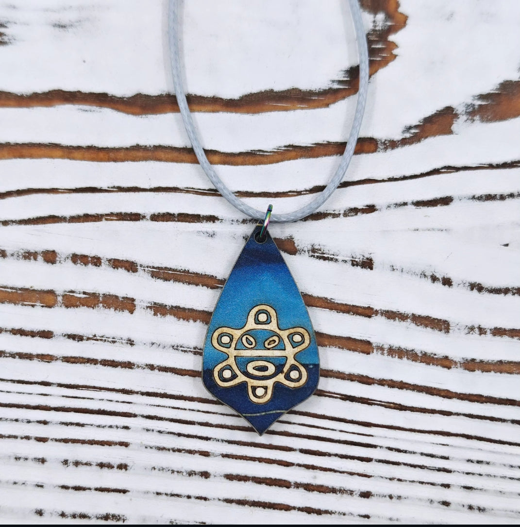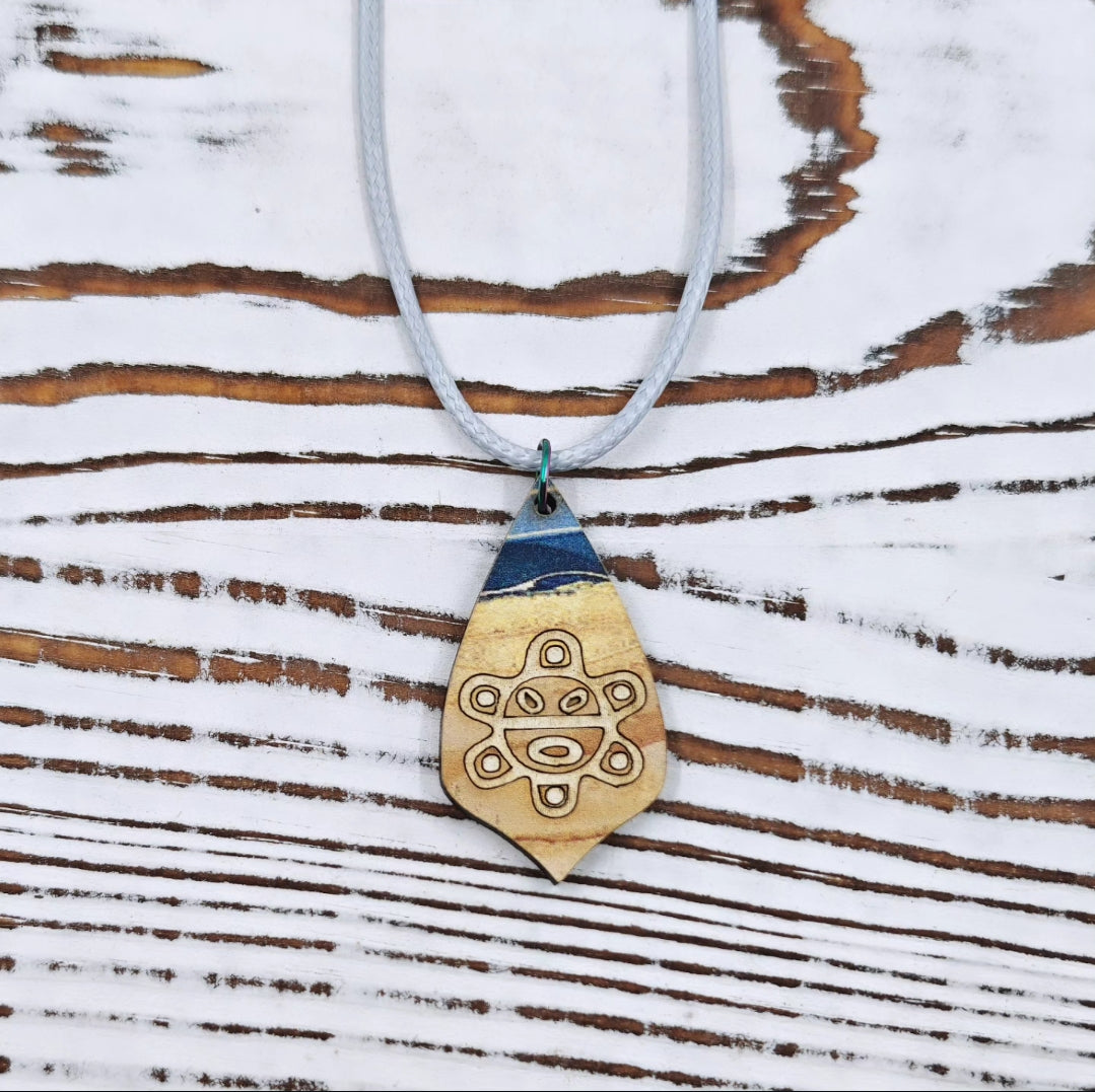 Este collar combina el símbolo del Sol Taíno —emblema de energía, vida y protección— con un fondo en tonos de azul que evocan el mar caribeño. Cada pieza presenta variaciones únicas en el patrón, lo que hace que cada collar sea verdaderamente irrepetible.