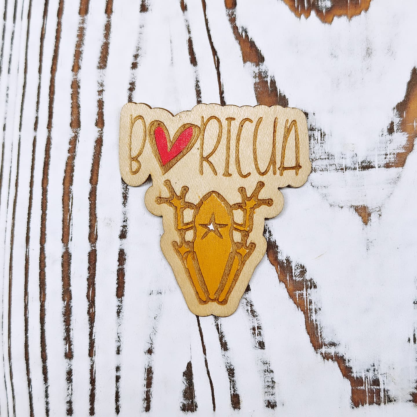 Este sticker en madera combina dos símbolos que nos llenan de orgullo: el coquí y la palabra “Boricua”, con un corazón que lo dice todo. Grabado con láser sobre madera y pintado a mano, este diseño tiene carácter y esencia isleña. Es perfecto para quienes llevan su identidad dondequiera que van.