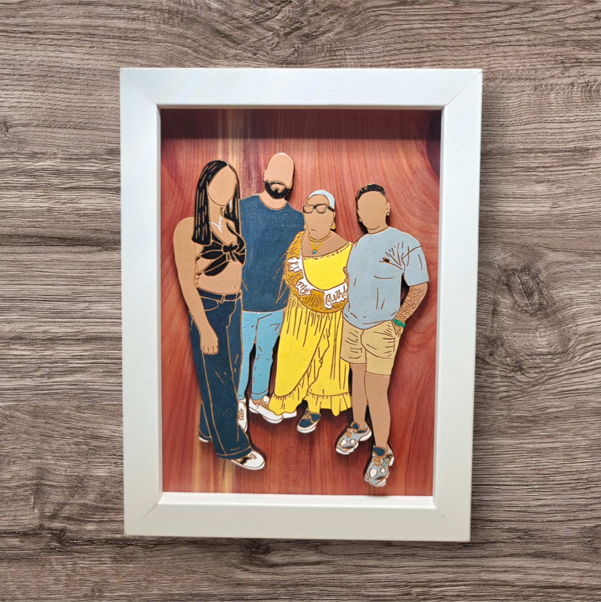 Son ideales para retratar parejas, familias, amistades o mascotas, convirtiendo recuerdos cotidianos en piezas decorativas con gran valor emocional. Disponibles en dos tamaños: 5x7 pulgadas y 8x10 pulgadas, perfectos para regalar o para darle un toque especial a cualquier espacio de tu hogar.