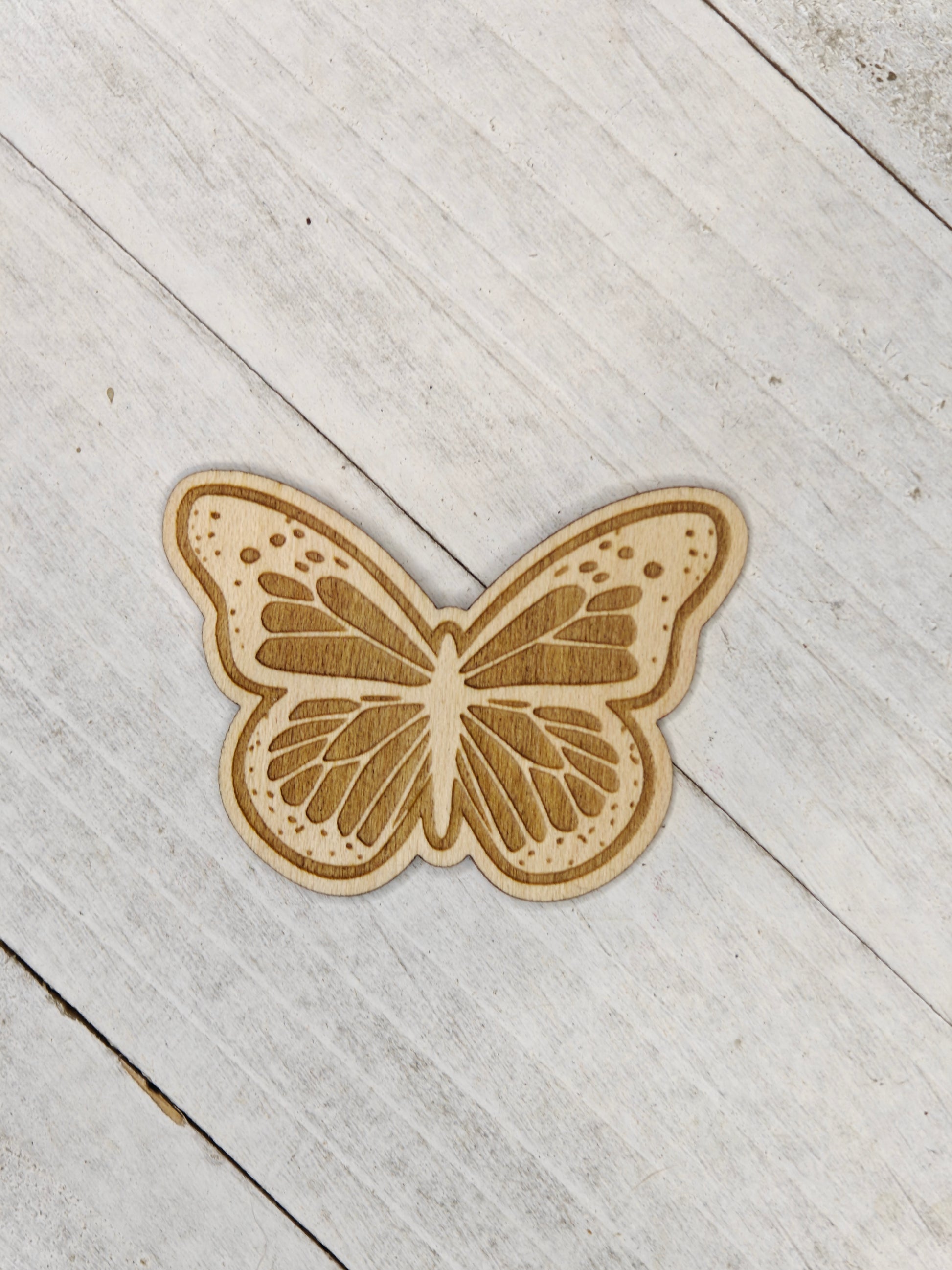 🦋 Natural wood finish with engraved details for a subtle, earthy look