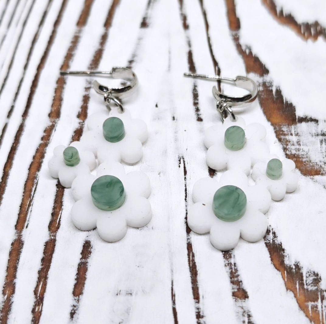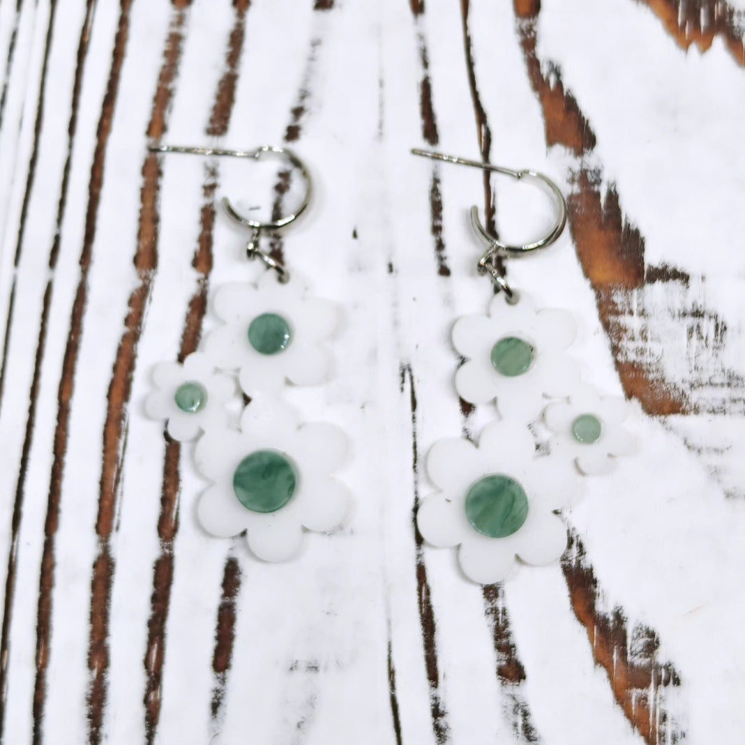 Estas pantallas están inspiradas en la frescura y ligereza de la primavera. Hechas en acrílico blanco con detalles en verde marmoleado, tienen una forma de flores que cuelgan delicadamente, creando un diseño moderno y femenino.