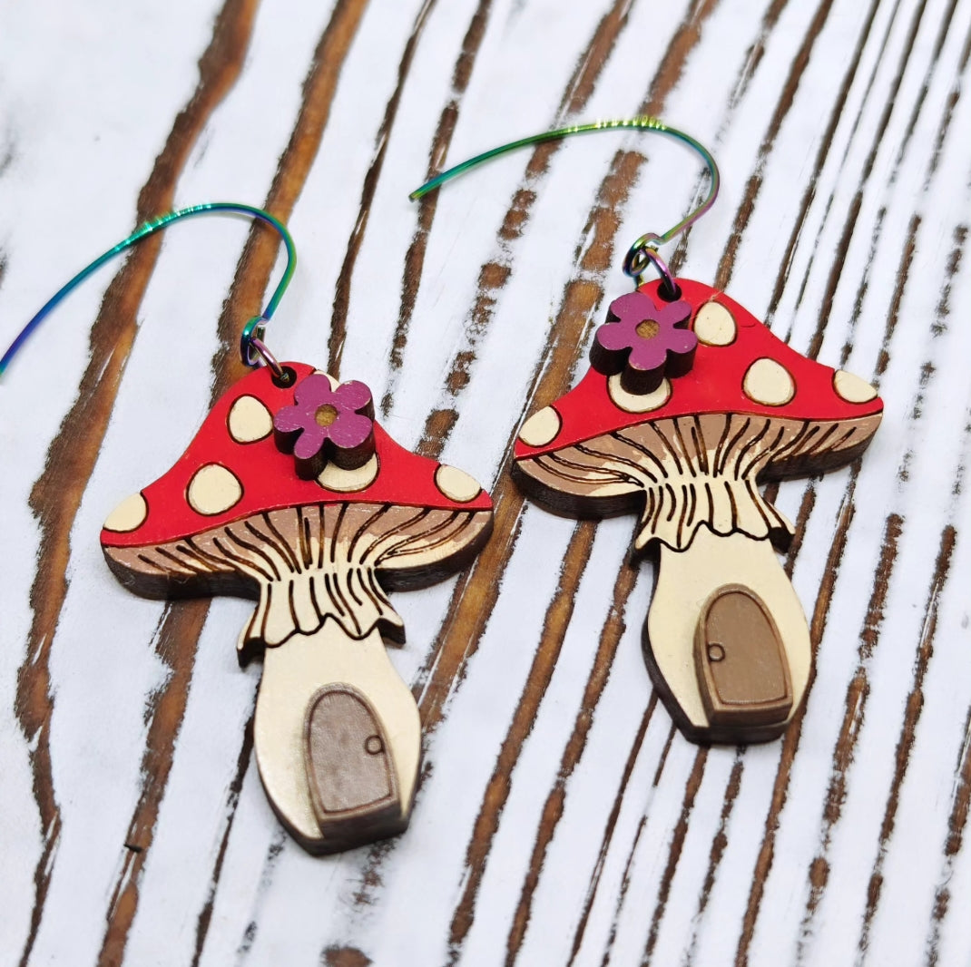 ¡Directo desde un bosque encantado! Estas pantallas en forma de hongo tienen el detalle adorable de una puertecita y una florecita en relieve que les da un efecto 3D. Están hechas en madera y pintadas completamente a mano con colores vibrantes y mucha ternura. Los ganchos son de stainless steel tornasol, añadiendo un brillo mágico que cambia con la luz. Perfectas para las almas mágicas, soñadoras y amantes de lo whimsical. 🍄✨