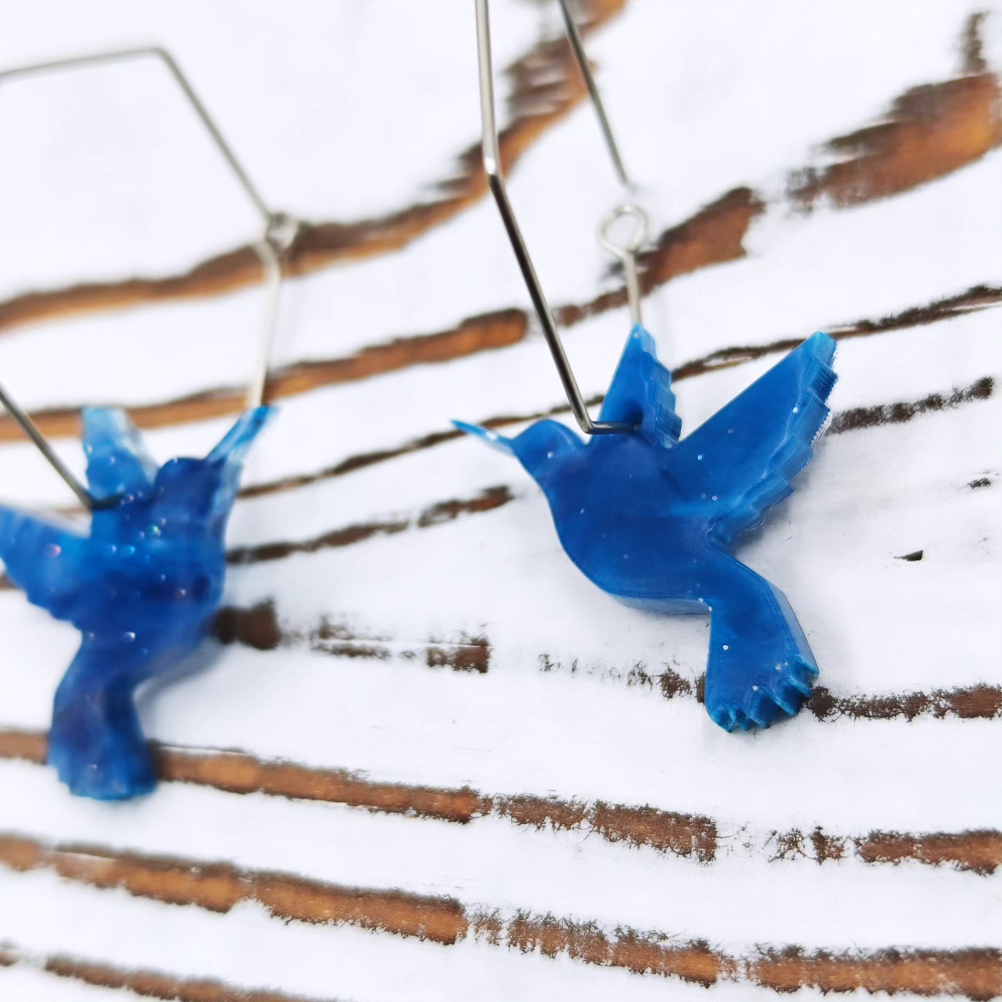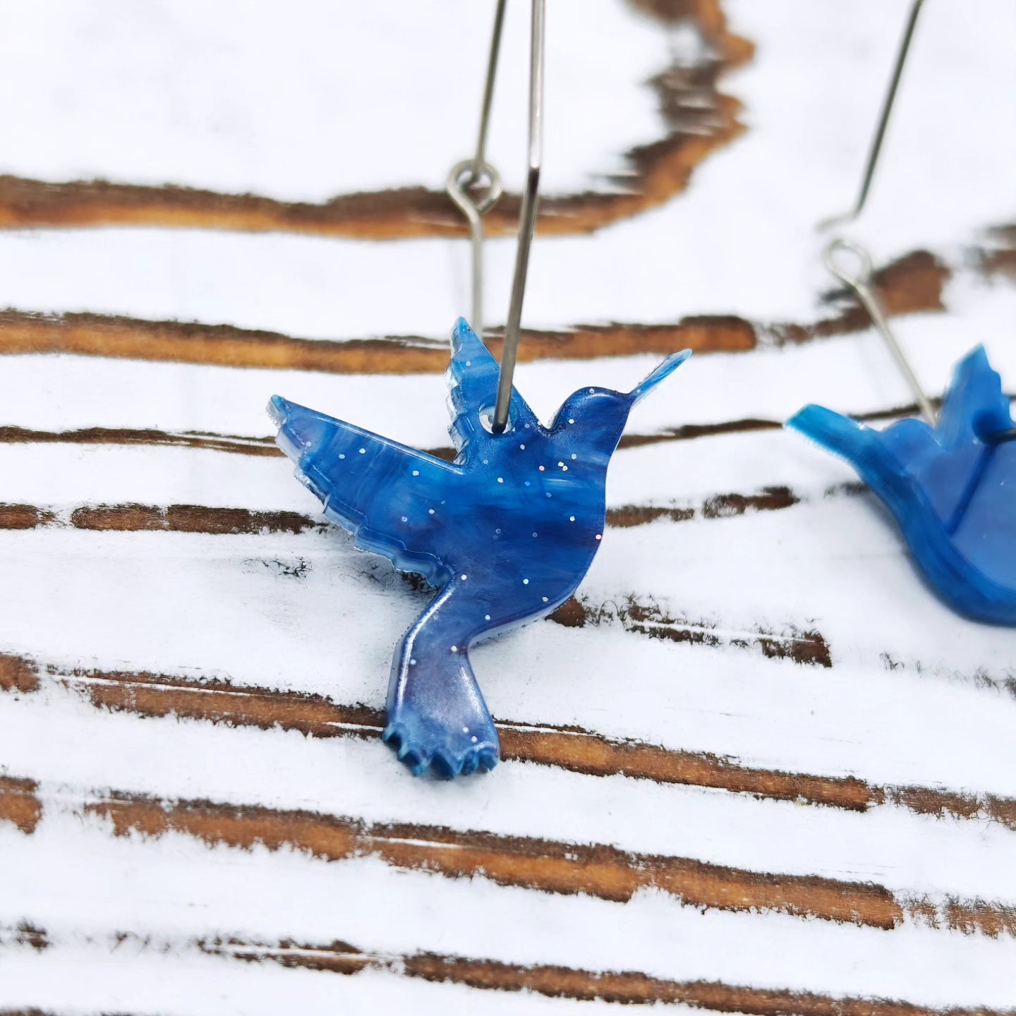 Estas pantallas rinden homenaje a uno de los símbolos más bellos de la naturaleza: el colibrí. Hechas en acrílico azul con un efecto marmoleado y detalles brillantes que evocan el cielo estrellado, reflejan libertad, energía y elegancia en cada movimiento.