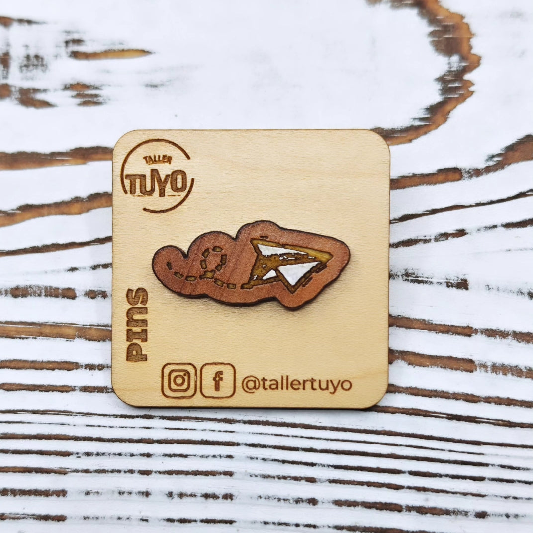 Cada pieza está hecha en madera, grabada y pintada a mano en nuestro taller, haciendo que cada pin sea único.