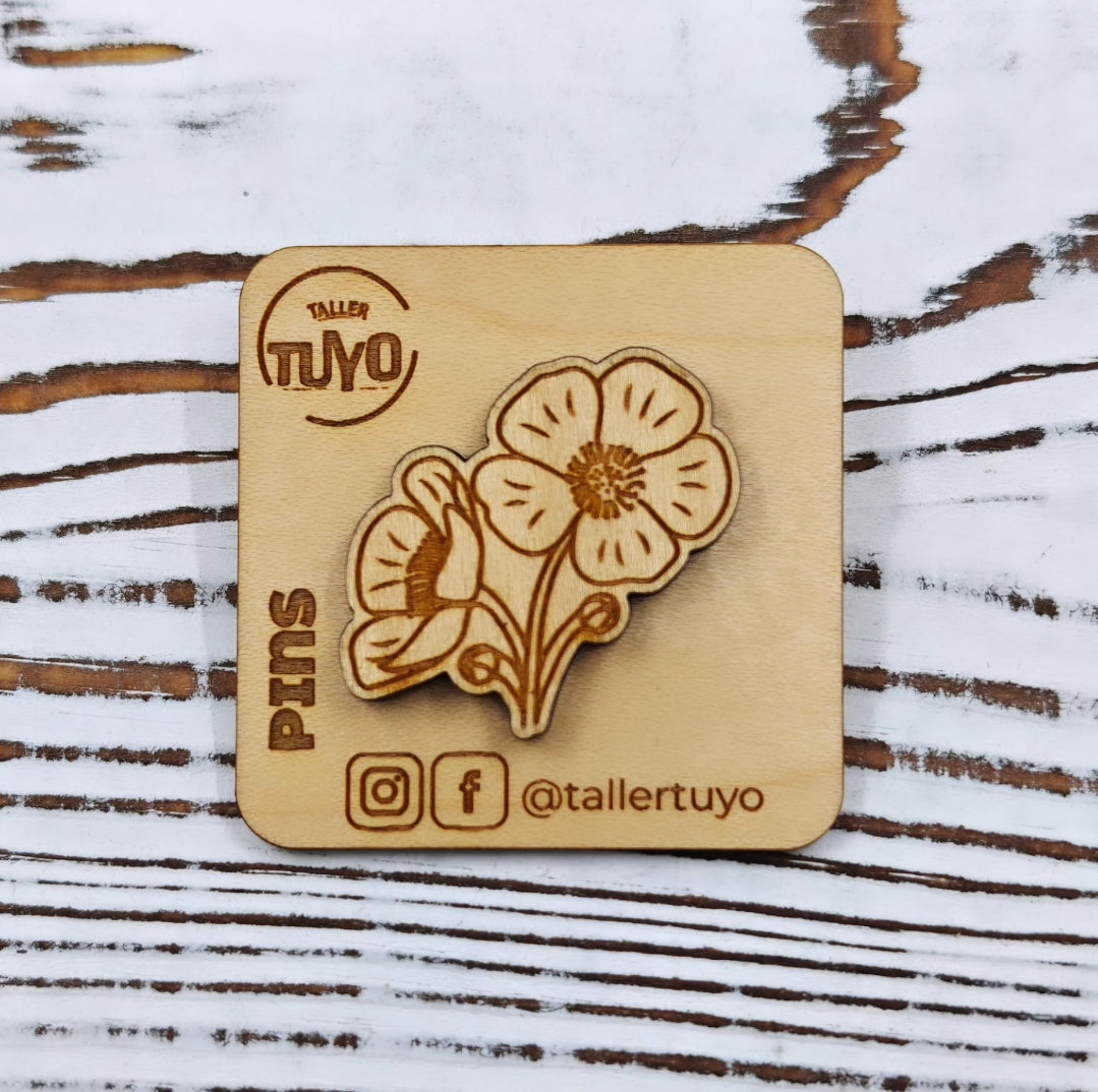 Este pin de flores silvestres está hecho en madera, grabado con láser y pintado a mano con tonos vibrantes que resaltan la belleza de lo artesanal. Cada flor tiene su propio carácter, reflejando la delicadeza y colorido de la naturaleza.