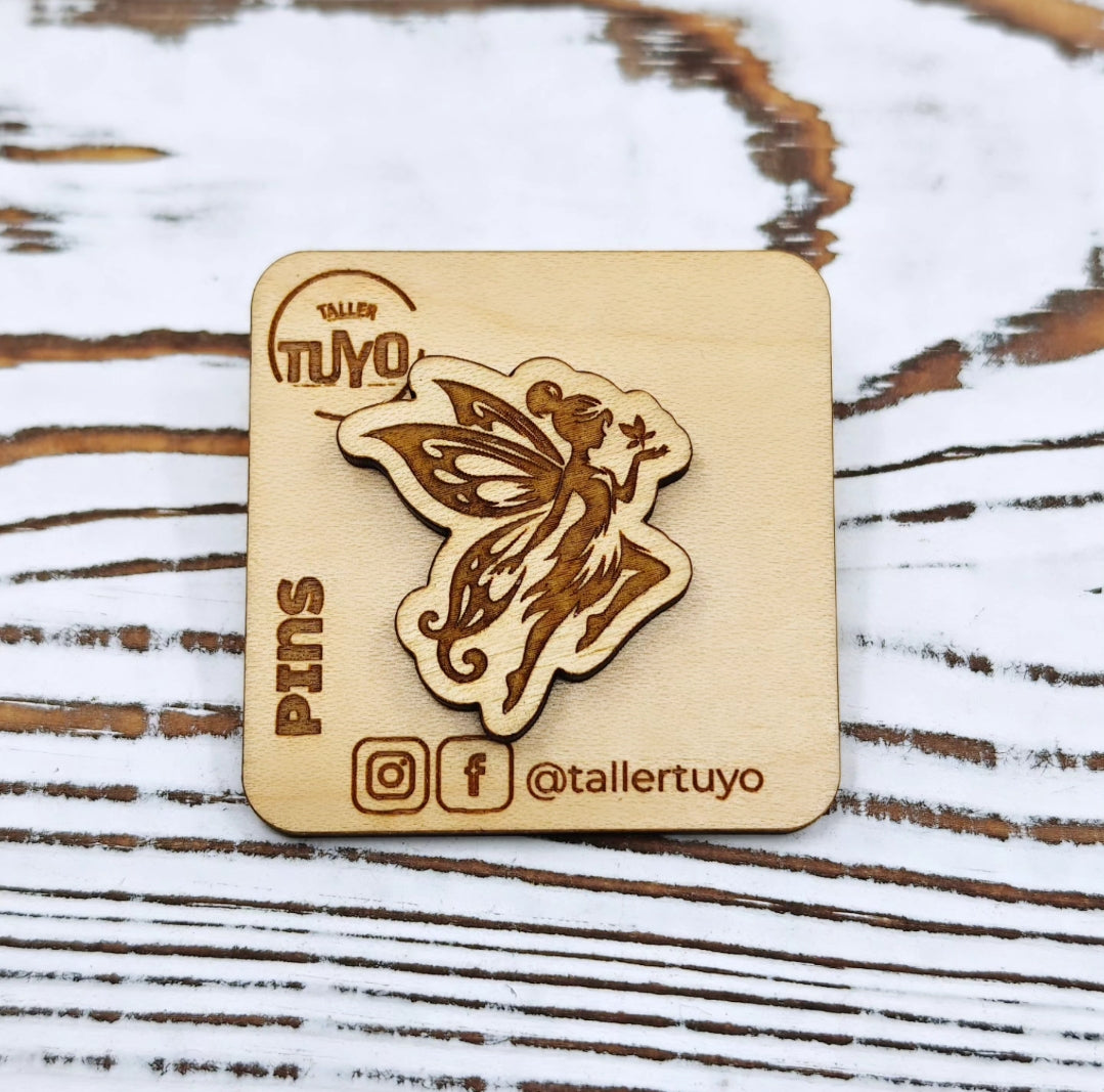 Este hermoso pin de hada está lleno de detalle y encanto, creado con precisión en madera y cortado y grabado en láser en nuestro taller. Su diseño delicado —con alas llenas de patrones y una pose llena de magia— lo convierte en el accesorio ideal para mochilas, jackets, carteras o para coleccionar.