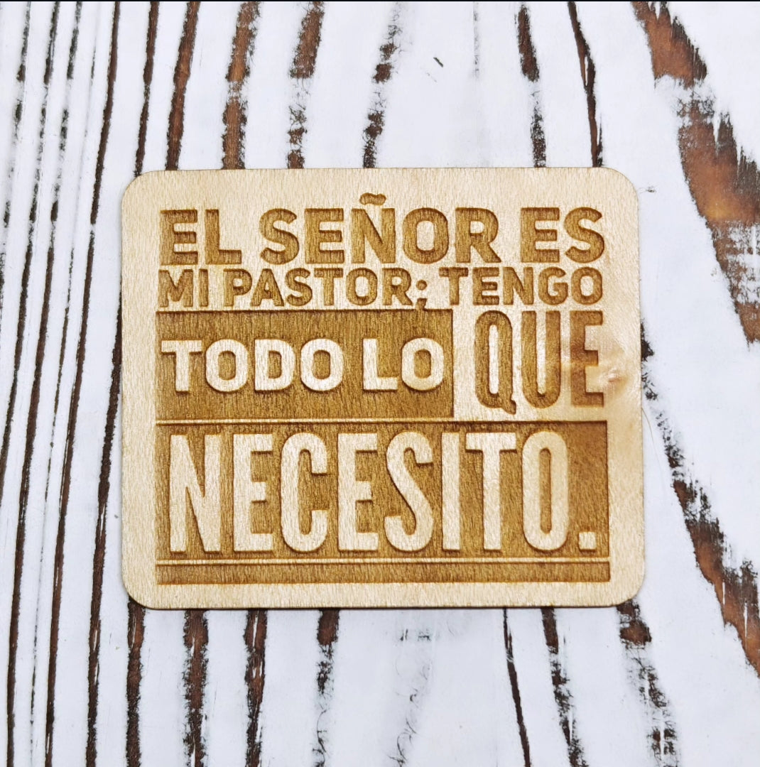 Inspirado en el Salmo 23:1, este sticker grabado en madera transmite un poderoso mensaje de fe: "El Señor es mi pastor; tengo todo lo que necesito."