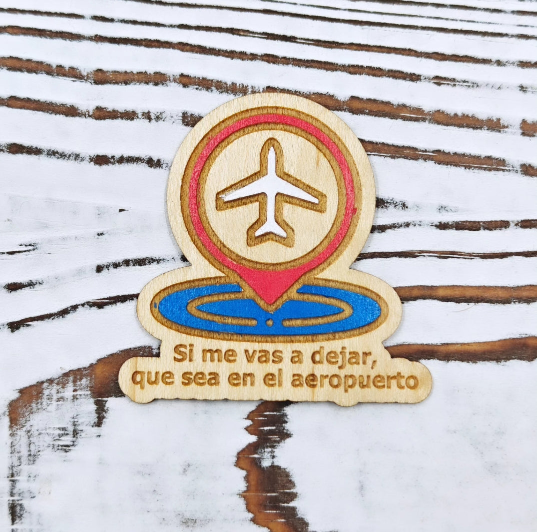 Este sticker es para los viajeros de corazón (o para los dramáticos con pasaporte al día). Grabado en madera y pintado a mano, este diseño combina humor con esa pasión por explorar el mundo… o simplemente escaparse del revolú. Viene en varias combinaciones de colores.